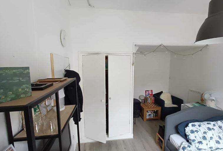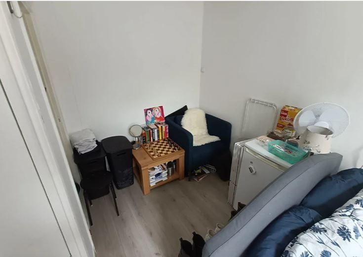Deze kamer van 14m2 is gelegen op de begane grond aan de voorzijde van het pand. De kamer biedt voldoende hoogte om een hoogslaper te plaatsen. Het huis beschikt over een badkamer en toilet welke je deelt met slechts één andere huisgenote die ook op de begane grond woont. De keuken wordt gedeeld met drie medebewoners.