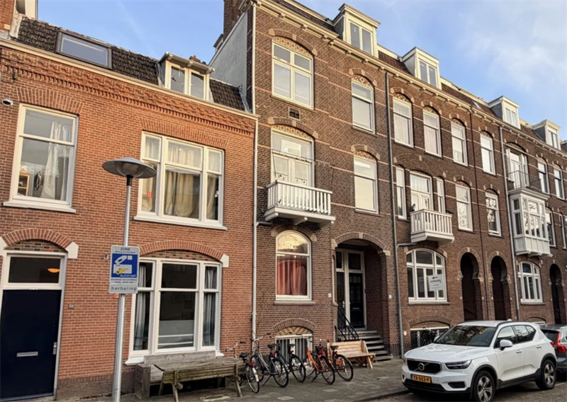 Het betreft een huis met zes kamers, verdeeld over 3 etages. De badkamer, toilet en keuken worden gedeeld. Elke kamer heeft een eigen wastafel. Indeling Bg: Entree, Derde etage: Toegang tot de ruime woon-slaapkamer (ca.20m2) aan de voorzijde van de woning.