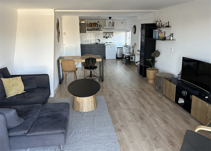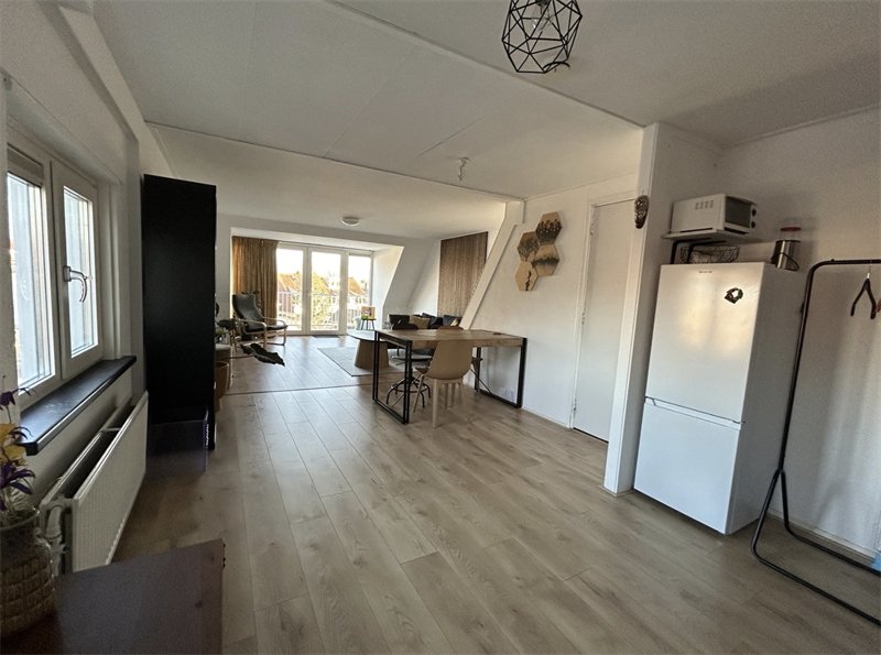 De totale oppervlakte is ruim 55m2. Open keuken met woonkamer, hal, douche- en toiletgelegenheid, 2 aparte slaapkamers. Privé balkon. 1 kamer is circa 17m2 en de kale huurprijs is € 716,96.