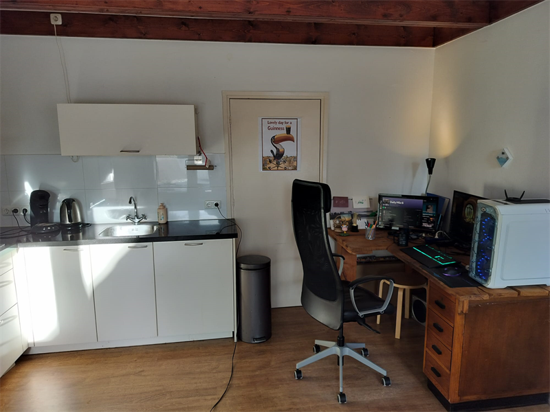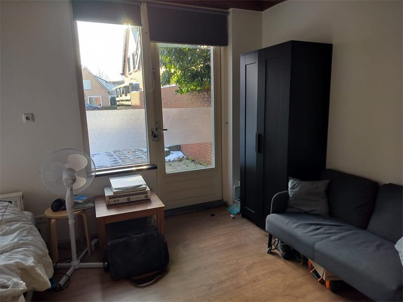 student / werkend Studio met een een moderne luxe keuken, voorzien van combi oven, vaatwasser, afzuigkap, gaskoopplaat en koelkast. Nette moderne badkamer met meubel en douchewand. Buitenruimte en mooie licht inval. parkeren op eigen terrein en fietsenstalling overdekt.