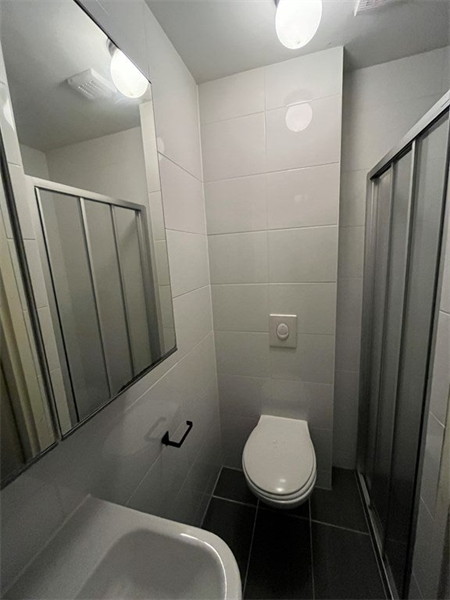 Ruime woonkamer gelegen aan de voorzijde van de woning met open keuken. De keuken is voorzien van diverse inbouwapparatuur zoals een vaatwasser, combi-oven, inductiekookplaat en een koel- vriescombinatie. De badkamer is voorzien van een douche, toilet en een wastafelmeubel met spiegel. Twee slaapkamers waarbij de eerste ruime slaapkamer directe toegang heeft tot de tuin..