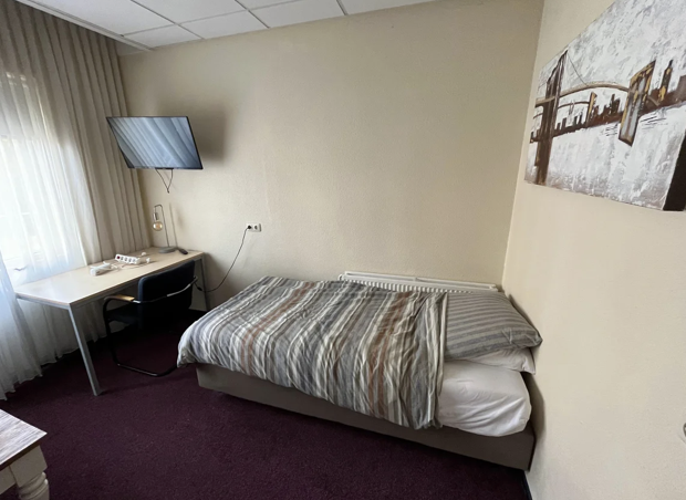 Hier vind je een compact keukenblok met koelkast, kookplaat en wasbak, evenals een bed, bureau en een televisie. De studio is volledig ingericht en klaar voor gebruik. Als extra pluspunt heeft de studio een eigen deur naar het gedeelde dakterras - perfect om even buiten te zitten of te ontspannen in de zon.Ligging: Centraal station Enschede: op slechts 700 meter loopafstand Grote Markt Enschede: binnen 5 minuten lopen bereik je het bruisende hart van Enschede met diverse winkels, cafés en restaurants. Universiteit van Twente: Ongeveer 15 minuten fietsen of 20 minuten met de bus, met haltes op loopafstand van de studio.