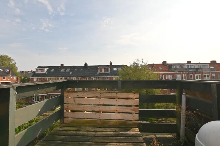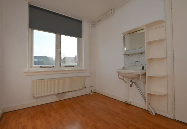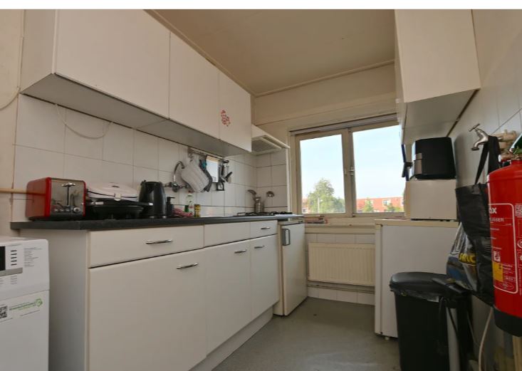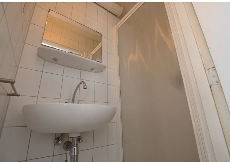 INDELING De kamer heeft een oppervlakte van circa 8m2 en beschikt over een inbouwkast en een wastafel met spiegel. De kamer is gelegen in een bovenwoning, de voorzieningen zoals de keuken, badkamer, toilet en het dakterras worden gedeeld met de overige (in totaal vijf) bewoners..