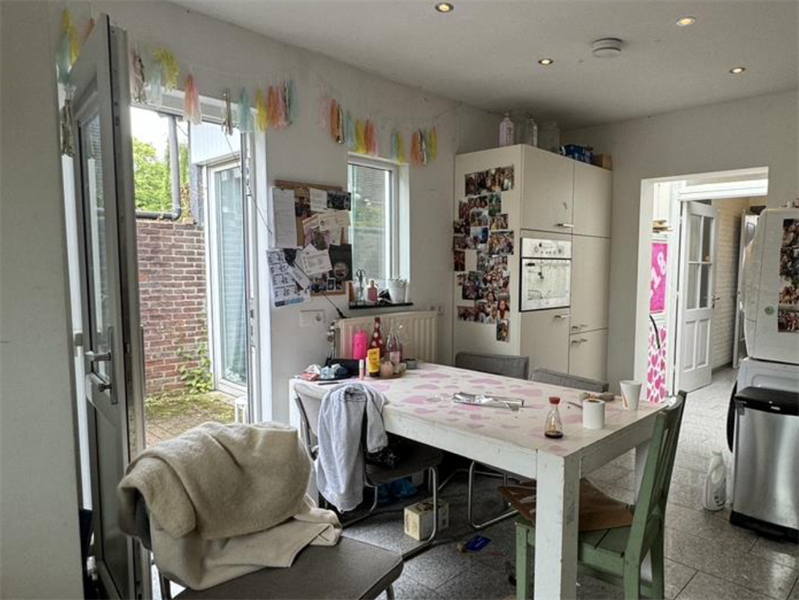 Beschikbaar voor studenten. Begane grond: De woning beschikt over een gezamenlijke entree. Op de begane grond bevinden zich twee kamers en een leefkeuken, die is voorzien van een vaatwasser, koelkast, oven en combimagnetron, met toegang tot de tuin. Ook de badkamer en het separate toilet zijn op deze verdieping gelegen.