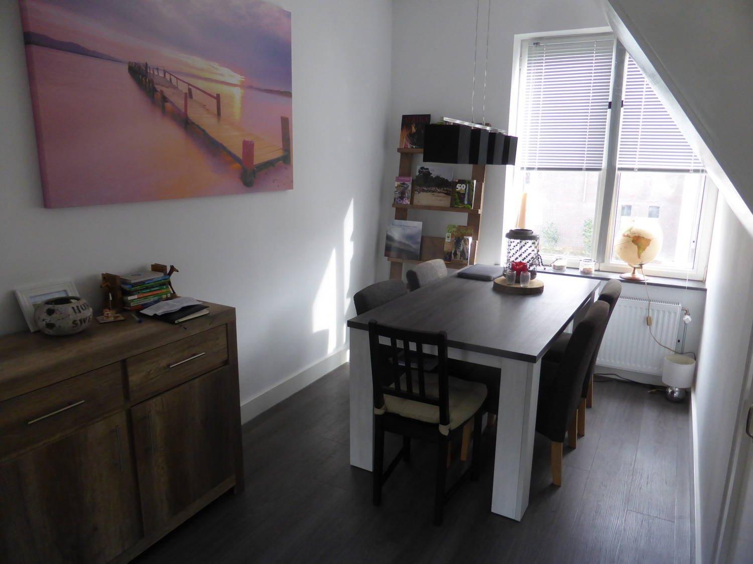 In de avonduren na het werk heeft men dus lekker de zon op het terras gericht. Tweede verdieping: Op de tweede verdieping bevinden zich de badkamer en de verrassend ruime slaapkamer, met flinke dakkapel. Badkamer is voorzien van toilet, inloopdouche, mechanische afzuiging, wasmachine en droger, sfeervolle verlichting en wastafel. Op de begane grond is een gezamenlijke berging voor de fiets aanwezig.De fiets kan dus veilig binnen in het huis gestald worden.