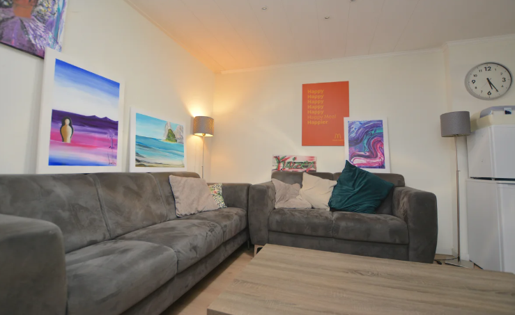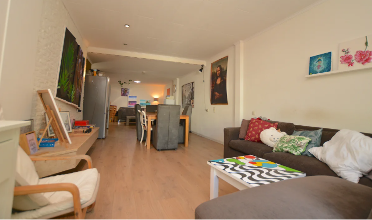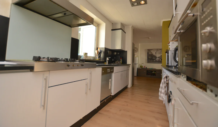 Het huis wordt gedeeld met 6 medebewoners. Je deelt hiermee de grote woonkamer van 43m2, de keuken wat beschikt over een vaatwasser, oven, wasbak met kraan, gasfornuis en erg veel werkruimte om je gerechten klaar te maken.