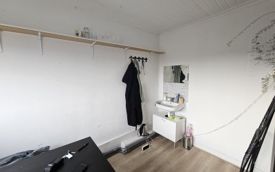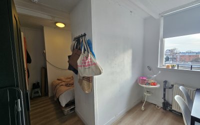 De Hanzehogeschool en de Rijksuniversiteit zijn eveneens goed bereikbaar per fiets. Indeling: Gezamenlijke trapopgang naar de appartementen. Via de voordeur bereik je een trapopgang naar de eerste verdieping van het pand. De kamer bevindt zich op de bovenste etage en is circa 14 m2 ruim.