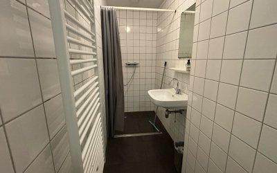 De kamer beschikt over een eigen wastafel. Het pand heeft drie keukens en twee badkamers die worden gedeeld met 8 huurders..