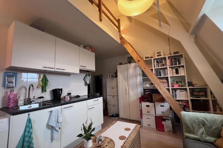 Het griftpark en het gezellige park Lepelenburg zijn op loopafstand te bereiken. Indeling Entree, hal, 2e verdieping Entree appartement, hal, toegang tot de woonkamer met open keuken voorzien van een 4 pits keramisch kookplaat, wastafel, afzuigkap, wasmachine aansluiting en voorzien van een keurige laminaat vloer. Vanuit de woonkamer is er toegang tot de ruime badkamer voorzien van een douche, toilet en een wastafel. Via een vaste trap bereik je de slaap entresol.