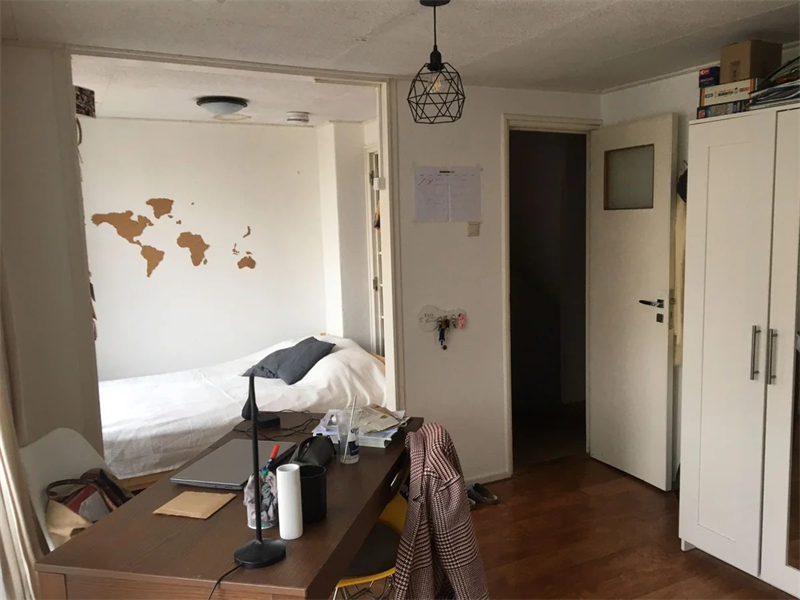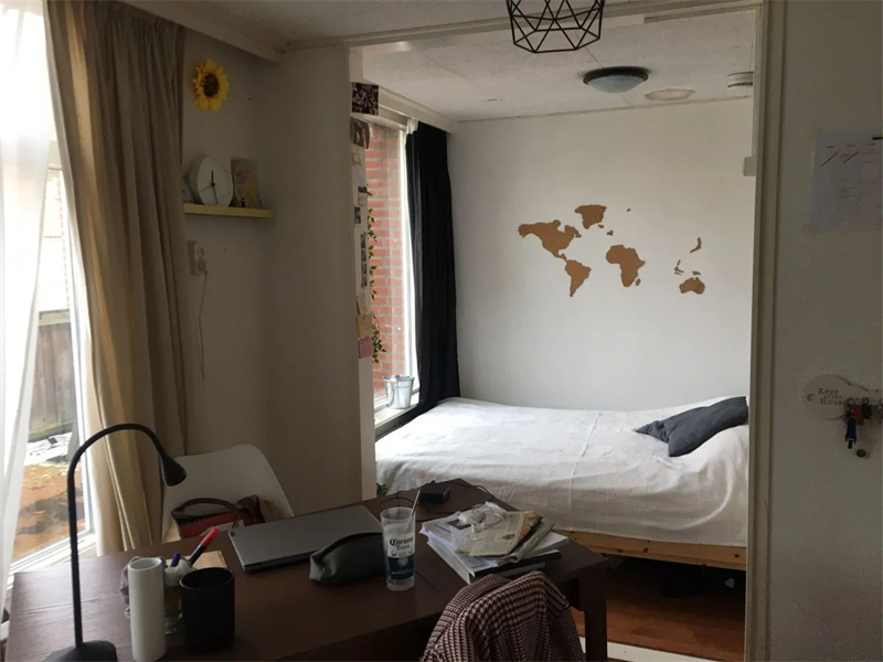 Deze ruime studentenkamer maakt deel uit van een internationaal studentenhuis.