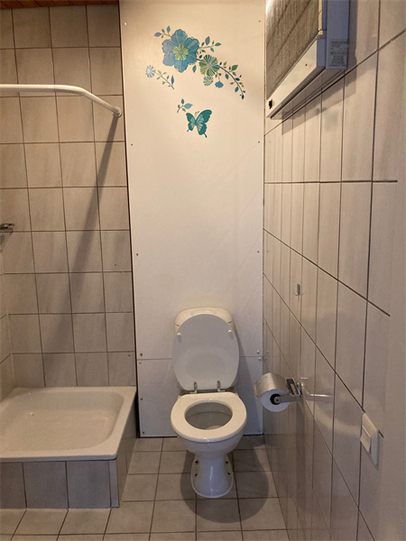 Slaapkamer van 11 m² met toegang naar de tuin op het betegelde terras aan de achterzijde. Grote berging met elektro boiler en wasmachine aansluiting. Algemeen: Gehele appartement is voorzien van kunststof kozijnen en dubbele beglazing. Verwarming middels elektrische wand convectors.