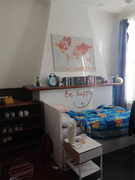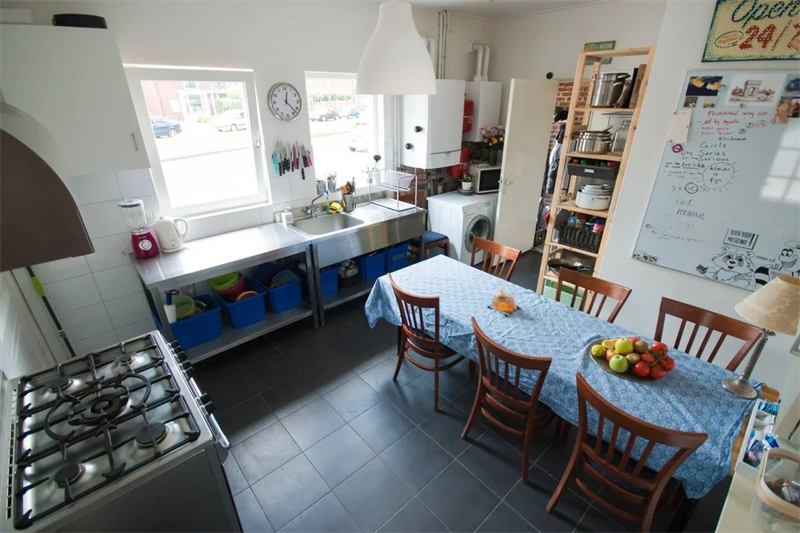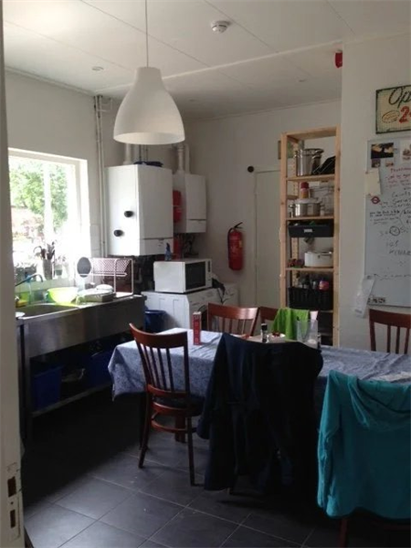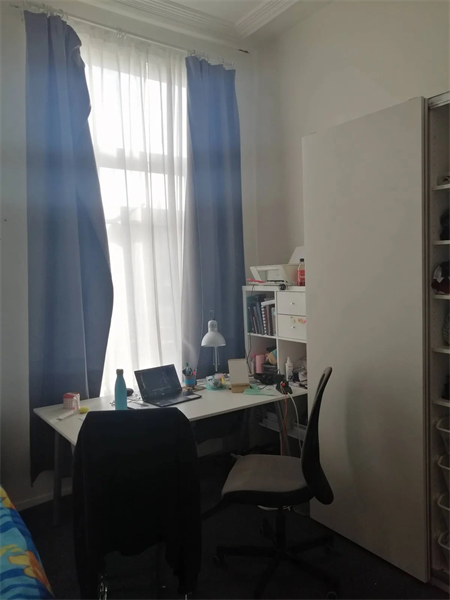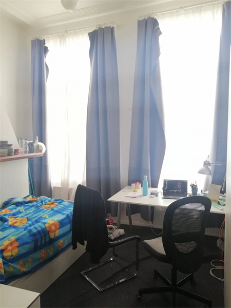 De kamer is ongeveer 16m2 meter en bevindt zich op de begane grond. De gemeenschappelijke ruimtes worden gedeeld met 6 medebewoners (2 badkamers, keuken en 3 toiletten).