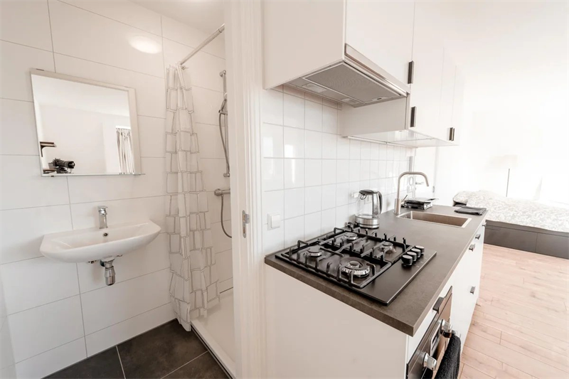 De woning beschikt over een privé studio met privé keuken en badkamer. Toilet is gedeeld in de gang..