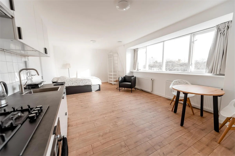 Furnished studio beschikbaar op de Weteringkade in Den Haag, een levendige en goed verbonden buurt met veel winkels, supermarkten en openbaar vervoer opties op loopafstand.