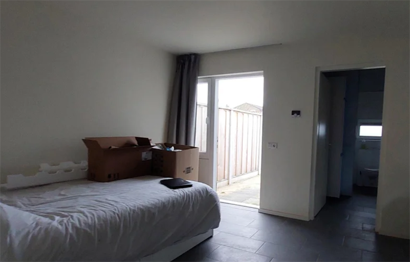 Doorloop naar slaapgedeelte van ruim 12 m² met toegang tot gedeelde achtertuin van 4,50 x 15,00 meter. De woning beschikt over een nieuwe keuken met koel/vriescombinatie, inductiekookplaat, vaatwasser, afzuigkap en combi oven/magnetron. Tevens een zeer nette en licht betegelde badkamer met douche, toilet en wastafel. Ook is er een wasmachine aanwezig.