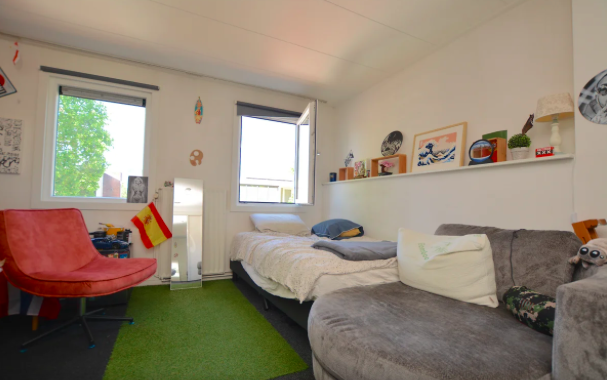 Het hoofstation van Emmen is 5 minuten lopen. Bushalte is ook super dichtbij de woonruimte. SITUERING De kamer is gelegen op de tweede etage De kamer heeft voldoende plek voor een twee persoons bed, bureau en een kledingkast. Het huis wordt gedeeld met 6 medebewoners.