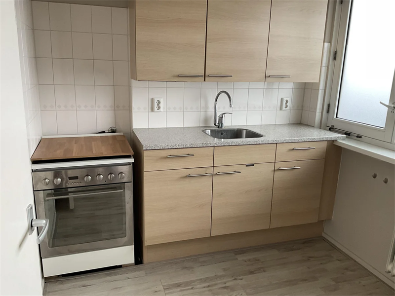 Lichte woonkamer met veel raampartijen en een fijne sfeer. Twee slaapkamers, ideaal voor een alleenstaande of stel. Volledig ingerichte keuken met moderne apparatuur. Nette badkamer met douche en wasbak.