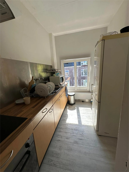 De kamer is ± 22 m² is recent gerenoveerd. Kamer is voorzien van een eigen wastafel. De keuken en badkamer met douche en toilet deel je met 1 huisgenoot. De kamer bevindt zich aan de achterzijde van het pand op de 2e verdieping.