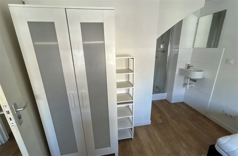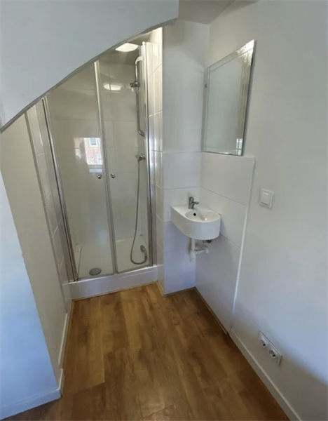 Kamer met douche en wastafel. Gemeubileerd met bed, bureau, stoel, kast en tv. Gedeeld gebruik van toiletten, keuken en wasmachine. Gemeubileerde onzelfstandige kamer Minimale huurperiode 6 maanden Geen huisdieren toegestaan.