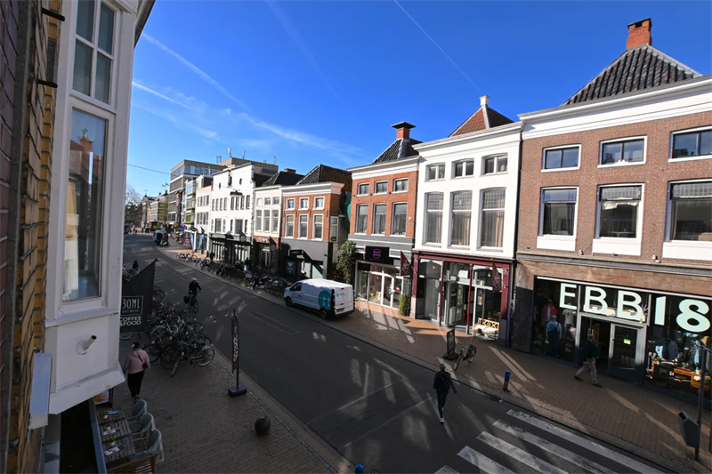 De woonruimte is gelegen aan de Oude Ebbingestraat in Groningen, op een zeer centrale en populaire locatie.