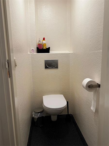 Het toilet wordt gedeeld met 3 anderen bewoners. Deze ruimte is gesitueerd op de begande grond aan de voorzijde.