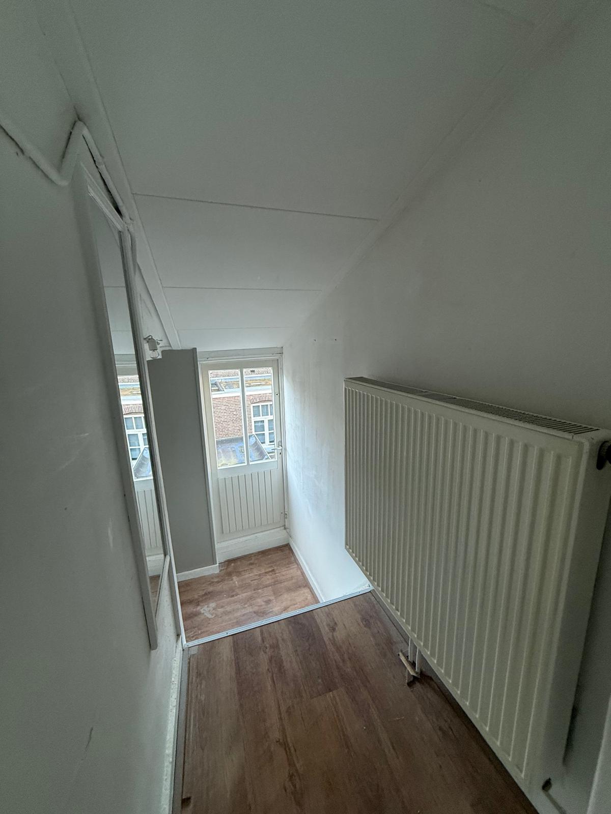 De kamer is gesitueerd op de tweede etage aan de achterzijde van het pand. De kamer van 12 m2 beschikt over een nis voor een bed en een eigen buitenruimte. Door de bijzondere inrichting heb je meerdere gedeeltes in de kamer van elkaar gescheiden. Tevens bieden de inbouwkast in de muur en de vliering veel ruimte voor het opbergen van spullen.
