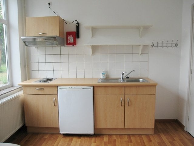 Deze studio beschikt over een eigen keuken met koelkast, afzuigkap en 2-pits elektrische kookplaat.