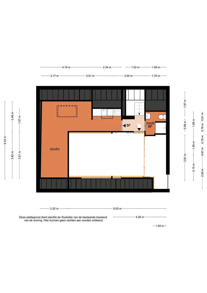 The studio consists of a living/ bedroom with open kitchen and a bathroom with shower, sink and toilet..