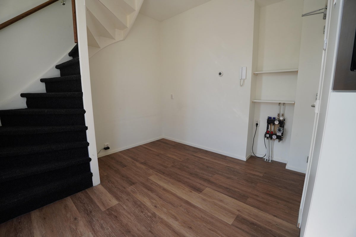 De woonkamer bestaat uit ca.15,50m2 met een moderne open keuken voorzien van diverse inbouwapparatuur, waaronder een oven en koelkast. Via de trap is de 2e verdieping te bereiken, hier is nog een vrij in te delen ruimte van 4m2 en bevindt zich de badkamer + toilet.