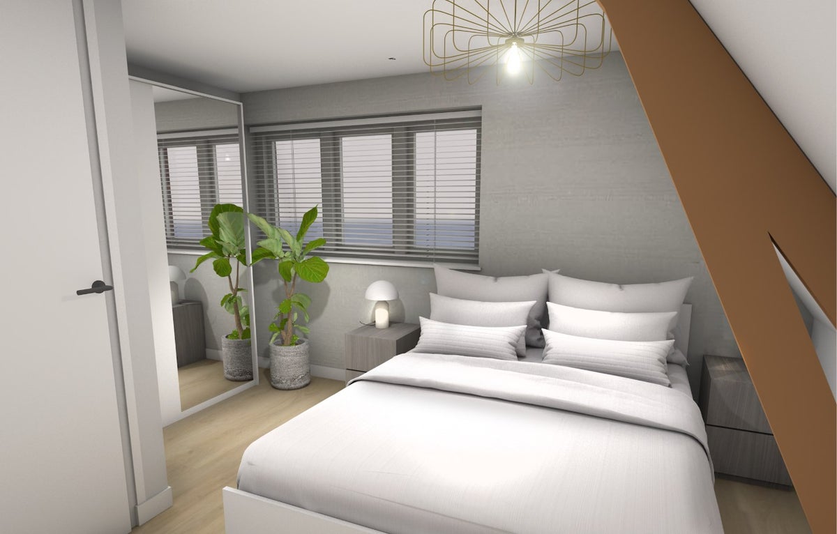 De slaapkamer bevindt zich aan de achterzijde van de woning.