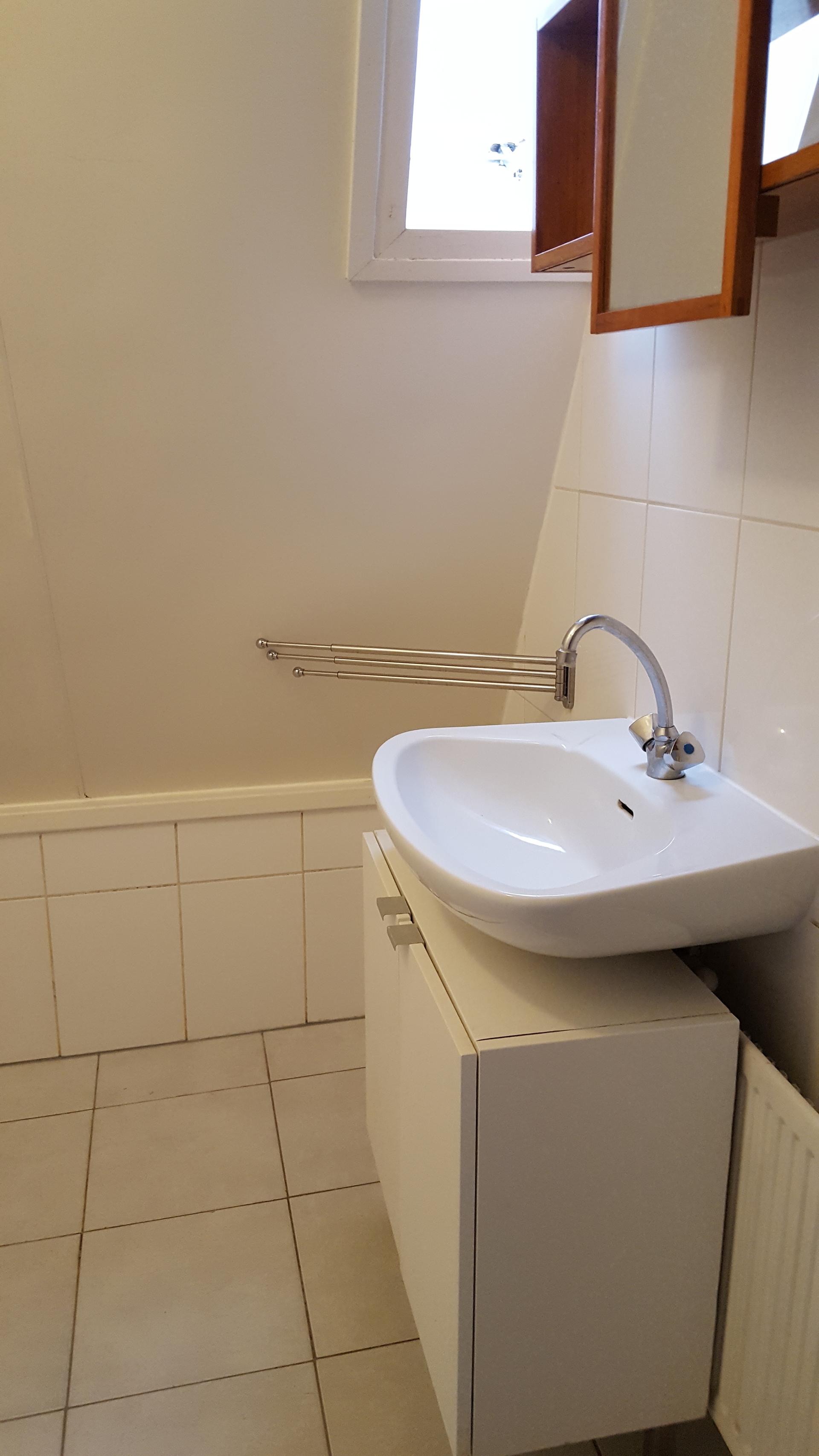 Badkamer met douche en wastafel