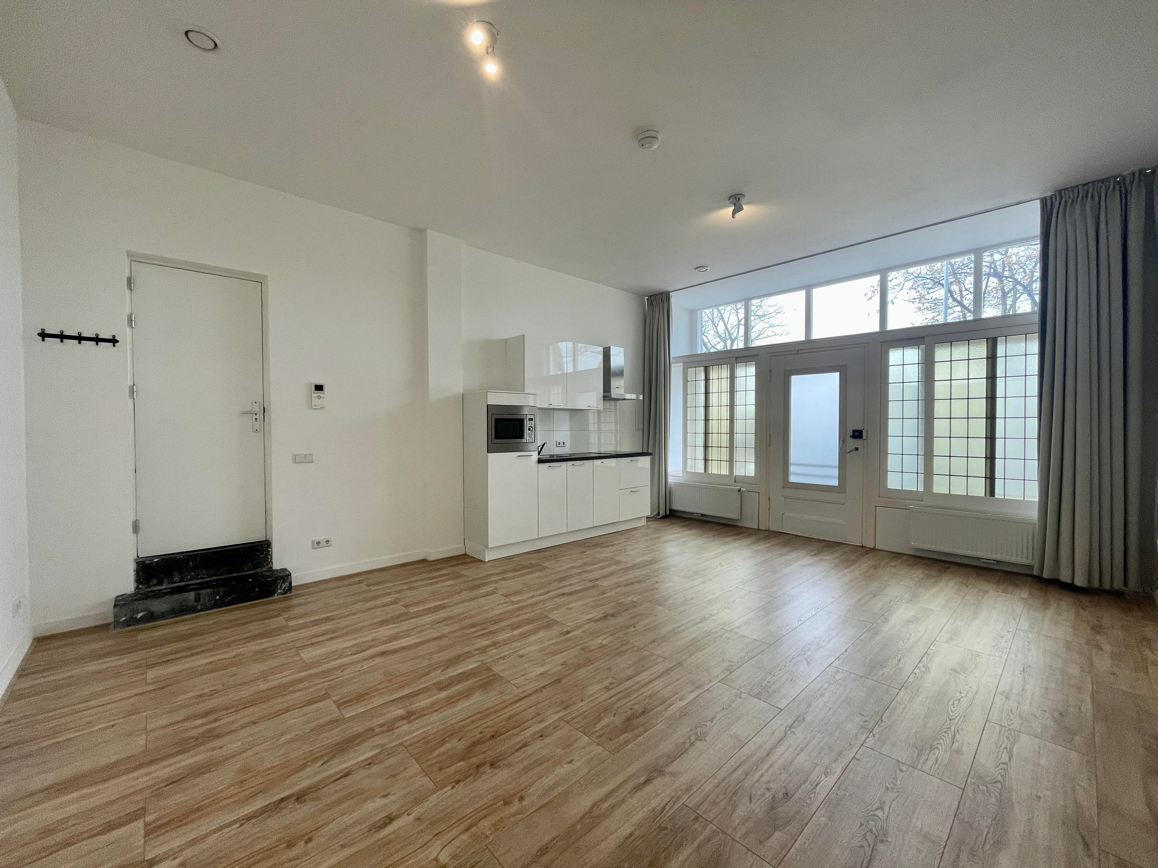 De studio is 38 vierkante meter en is gelegen op de begane grond aan de voorzijde van het gebouw.
