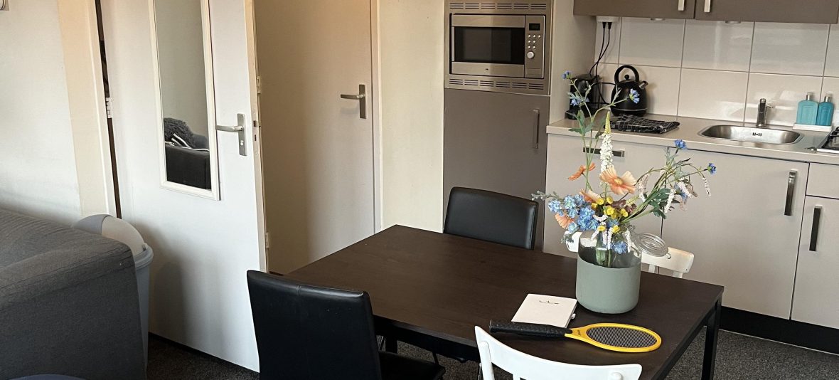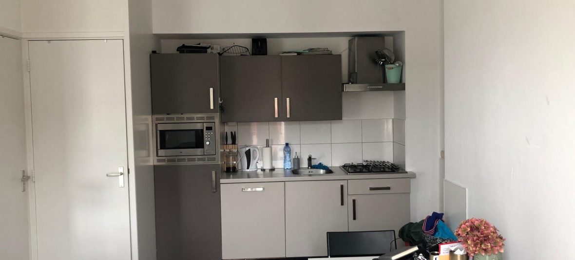 Het betreft een ruime en lichte 1-persoons studio van ca. 35m2 op de eerste verdieping van het pand. De keuken in de studio is voorzien van een 4-pits gaskookplaat, een koelkast met vriesvak, combimagnetron, afzuigkap en een vaatwasser.