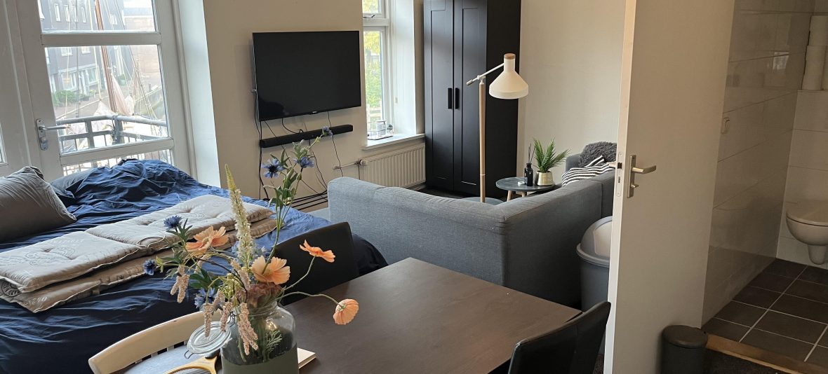 De studio beschikt over een balkon (de achterzijde van het pand) met uitzicht op het water. In het pand zit een fietsenstalling -> deze deel je met 2 andere appartementen. De studio is gelegen boven een café, zijn wij opzoek naar iemand die hier bewust van is en hier ook tegen kan. Servicekosten omvatten: Energie, water, internet en tv-signaal, glasbewassing buitenramen (4x per jaar), schoonmaak algemene ruimten (1x per week), Huismeesterschap, afschrijving stofferingen (pvc-vloer, binnenschilderwerk, gordijnen, basisverlichting), bijdrage kosten waterontharder, Bijzonderheden: - Huisdieren en roken zijn niet toegestaan in de woning.