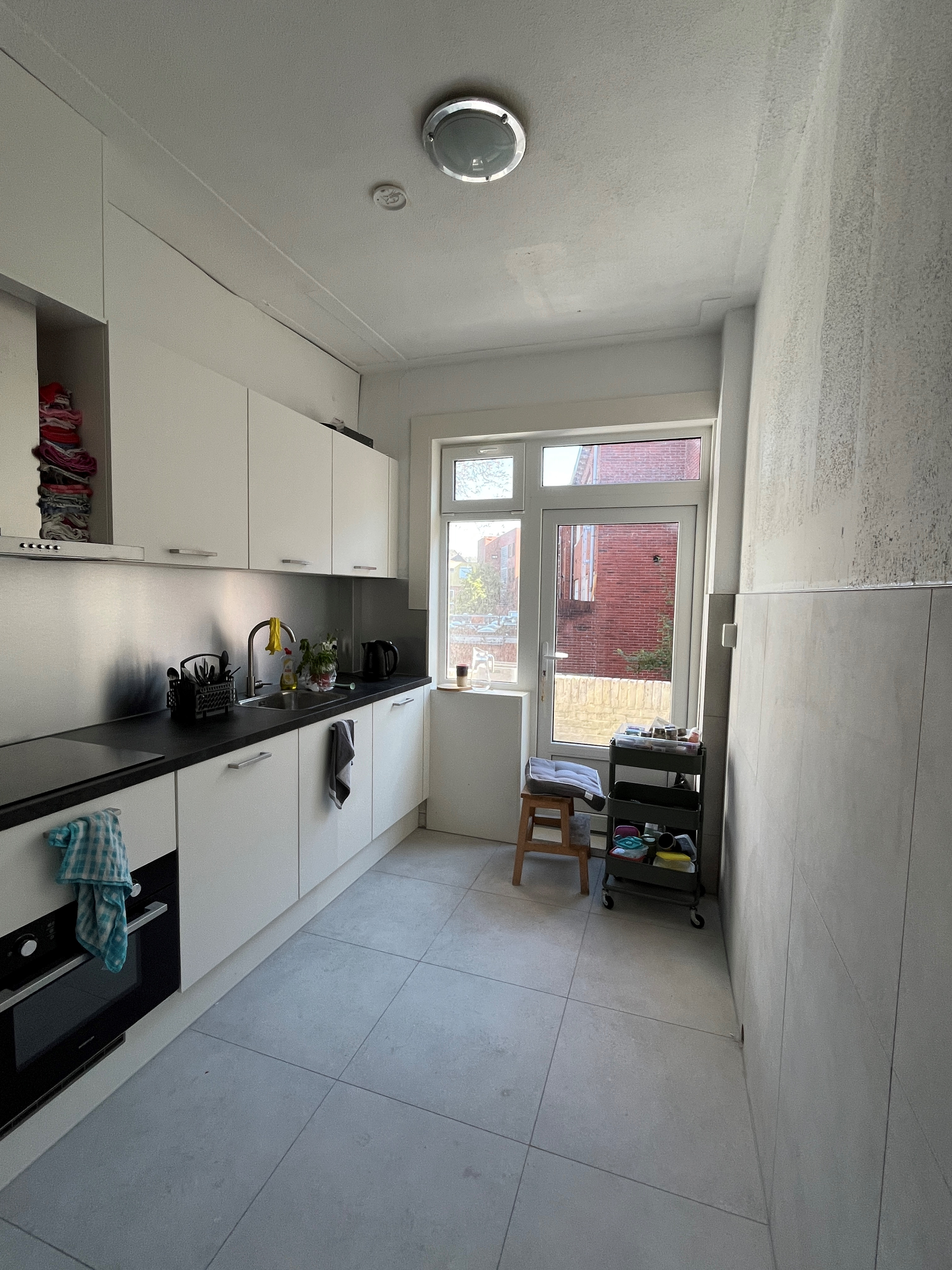 Deze kamer beschikt daarnaast over een eigen keukenblok met een inductiekookplaat, afzuigkap, combioven en koelkast. Er is ook een gedeelde keuken aanwezig, voorzien van een inductiekookplaat, afzuigkap, koelkast en combioven. Daarnaast is er een gedeelde badkamer met een douche en dubbele wasbak, het toilet bevindt zich op de hal. Tot slot is er een balkon aanwezig.