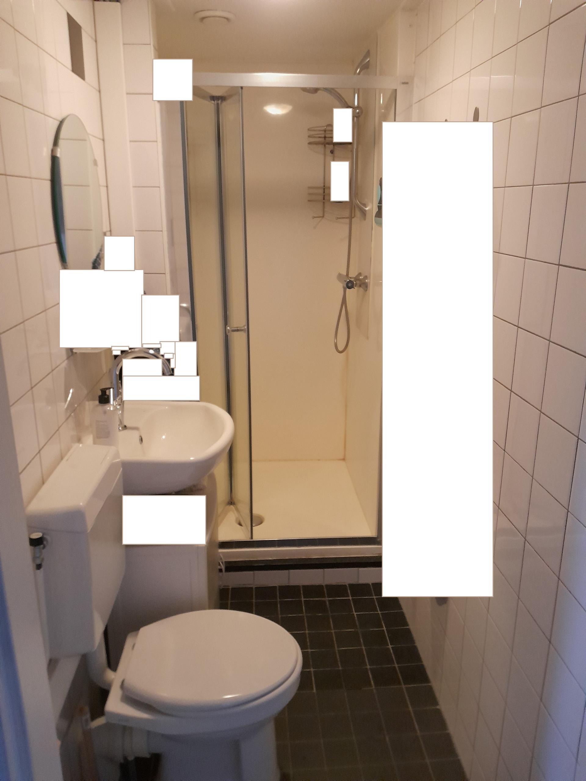 Het is een ruim appartement van in totaal 37 vierkante meter, inclusief badkamer, keuken en slaapgedeelte. Je deelt de overloop met vier andere bewoners en hier staan ook de wasmachine en droger die de eigenaar heeft laten plaatsen.