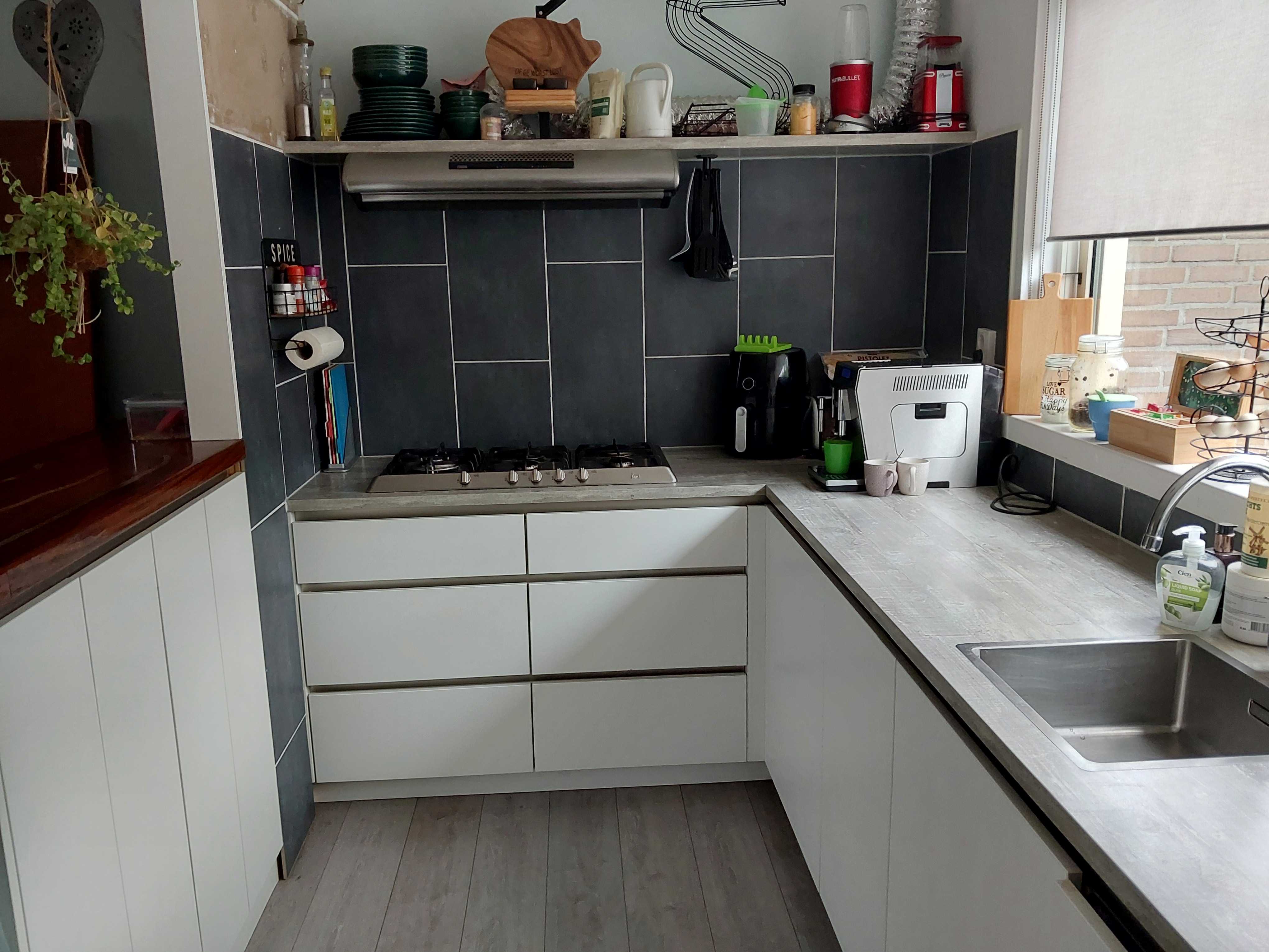 Dit betekent dat afhankelijk van uw inkomen een andere huurprijs geldt. * Heeft u een inkomen lager dan € 38.500,- dan wordt de kale huurprijs verlaagd naar € 731,93 per maand. * Heeft u een inkomen dat tussen € 38.500,- en € 54.848,- ligt, dan betaalt u gewoon de kale huurprijs zoals vermeld in de advertentie.Zelf aangebrachte veranderingenToilet en tegelvloer in de bijkeukenHoekkeukenBadkamer en wc op de 1e etageZaken ter overnameLaminaatvloer hele woningVitrage hele woning2 kamer glasdeuren (woonkamer naar hal en keuken naar bijkeukenVloerbekking op de trappenWandbekleding met tv meubelLuifel aan de achtergevelKeukenapparatuurBar met tafelOverkapping in de tuinFietsenhok in de tuin.