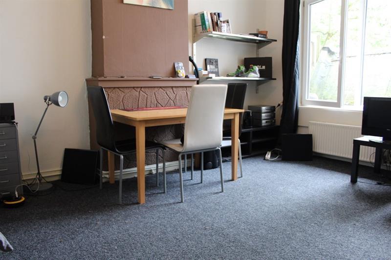 De kamer heeft een eigen wastafel en is onderdeel van een studentenhuis dat je deelt met vier mannelijke huisgenoten. Samen maken jullie gebruik van de keuken, douche en wc.