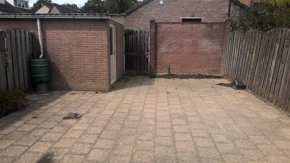 spachtelputz / spuitwerk / granol) op diverse wanden. Standaard is behang klaar. Schutting aanwezig inclusief poort. Standaard: Paal met gladde draad als erfafscheiding. Bestrating afwijkend/aangepast/uitgebreid. Standaard: 10 rijen betontegels (300 x 300 mm) aan achtergevel, inclusief 3 rijen naar poort met aftakking naar berging.De huurder is voor het onderhoud zelf verantwoordelijk.