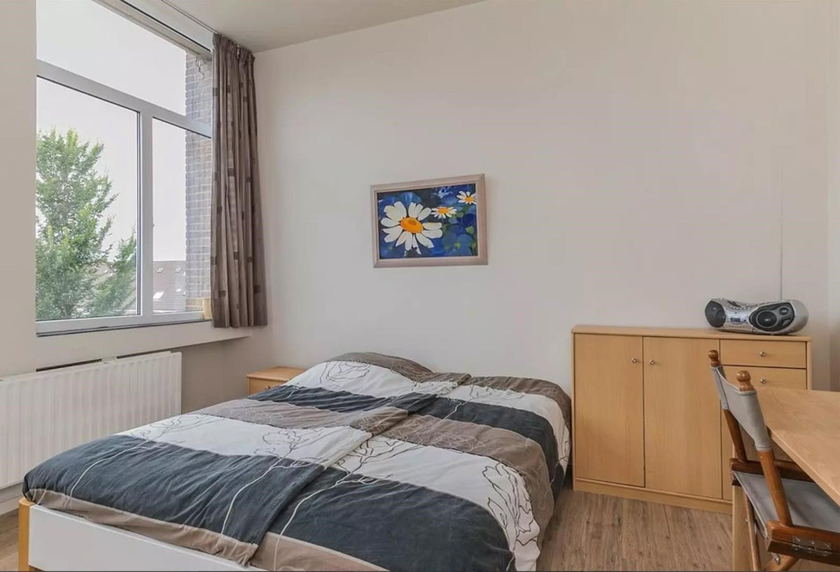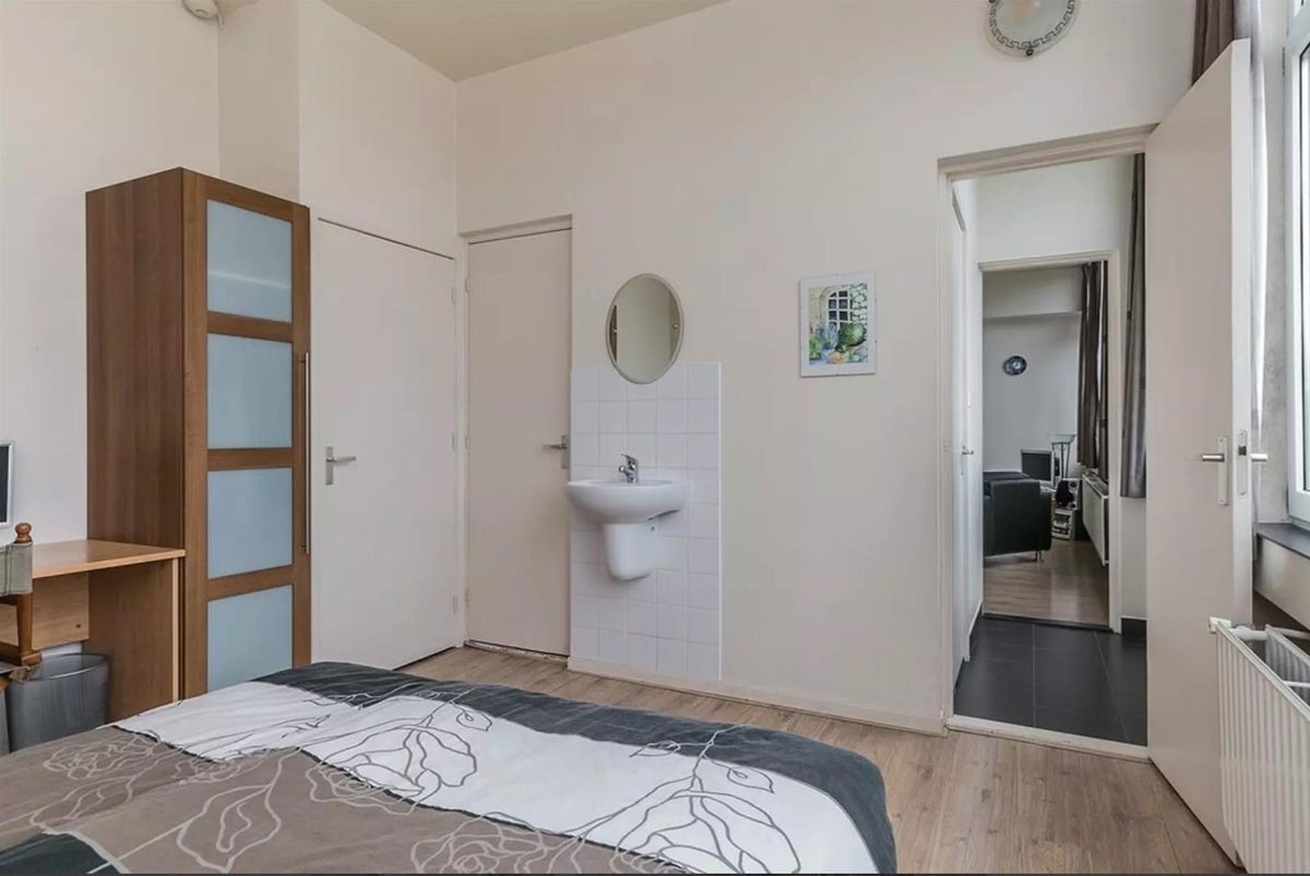 Zeer ruime slaapkamer met inbouwkast voor extra opbergruimte. De extra berging met wasmachine-aansluiting bevindt zich op de gang.