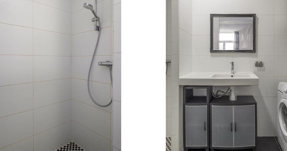 Appartement: hal, slaapkamer, badkamer met douche, wastafel en wasmachine-aansluiting. De woonkamer heeft een balkon en een open keuken die is voorzien van diverse apparatuur.