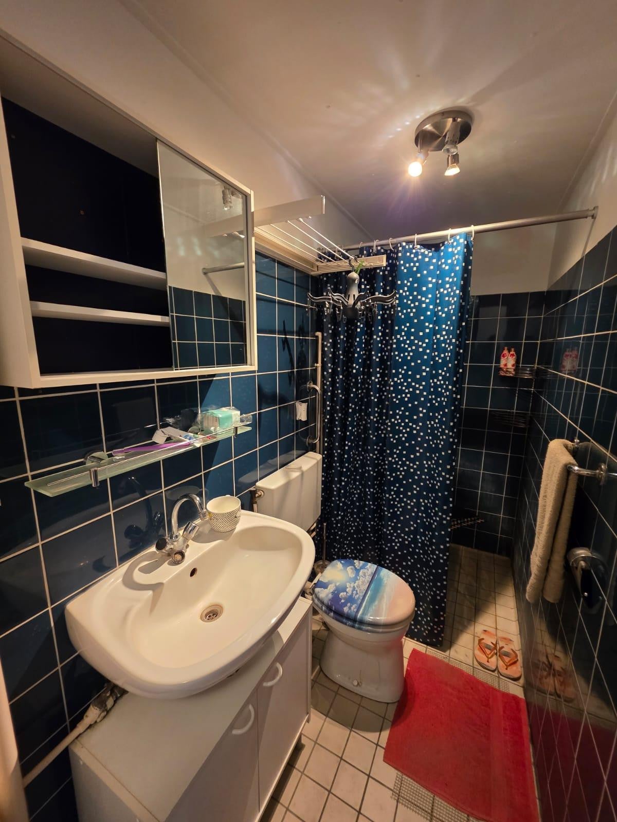 Het appartement heeft één ruime slaapkamer en een badkamer met douche, wastafel en toilet. Verder zijn er enkele inbouwkasten aanwezig..