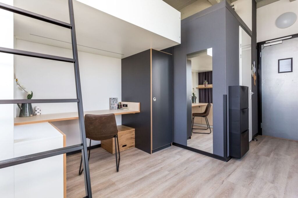 De Universiteit is helemaal om de hoek, het complex ligt op de campus zelf en vlak naast de Universiteit van Eindhoven! Deze appartementen hebben een contract voor onbepaalde tijd zolang je student bent. Deze studio heeft een eigen badkamer en keuken. De ruimte is gestoffeerd en gemeubileerd, zodat je er direct in kunt trekken. Het complex biedt je ook gezamenlijke ruimtes waar je huisgenoten kunt ontmoeten. Behalve de huur, komen ook de nuts- en servicekosten voor je rekening. Er een wasserrette in het pand aanwezig waar je tegen betaling met de Pay2Wash app gebruik kunt maken van de wasmachines en drogers.