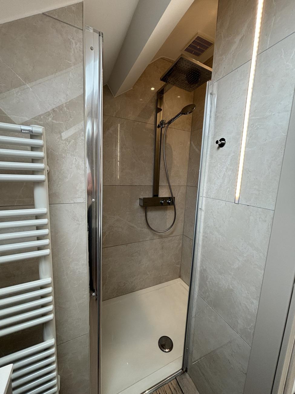 Daarnaast is er een comfortabele slaapkamer en een nette badkamer met douche.