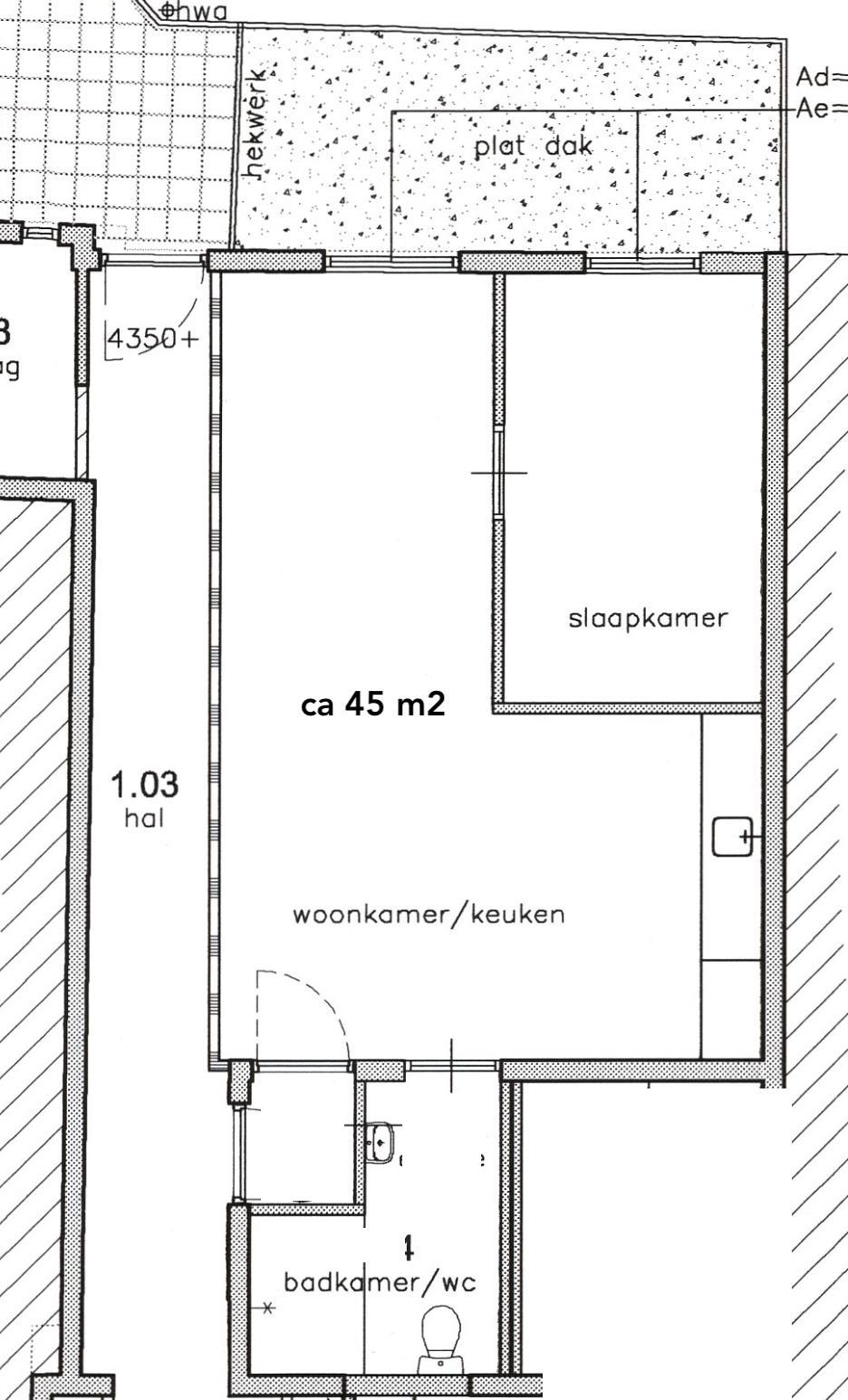 Appartement is voorzien van een keuken, badkamer en laminaatvloer. Dit stijlvolle appartement is licht door de grote ramen en heeft een gemeenschappelijk gebruik van een terras. Totale oppervlakte ca 45 m2. Bewoonbaar voor 2 personen.