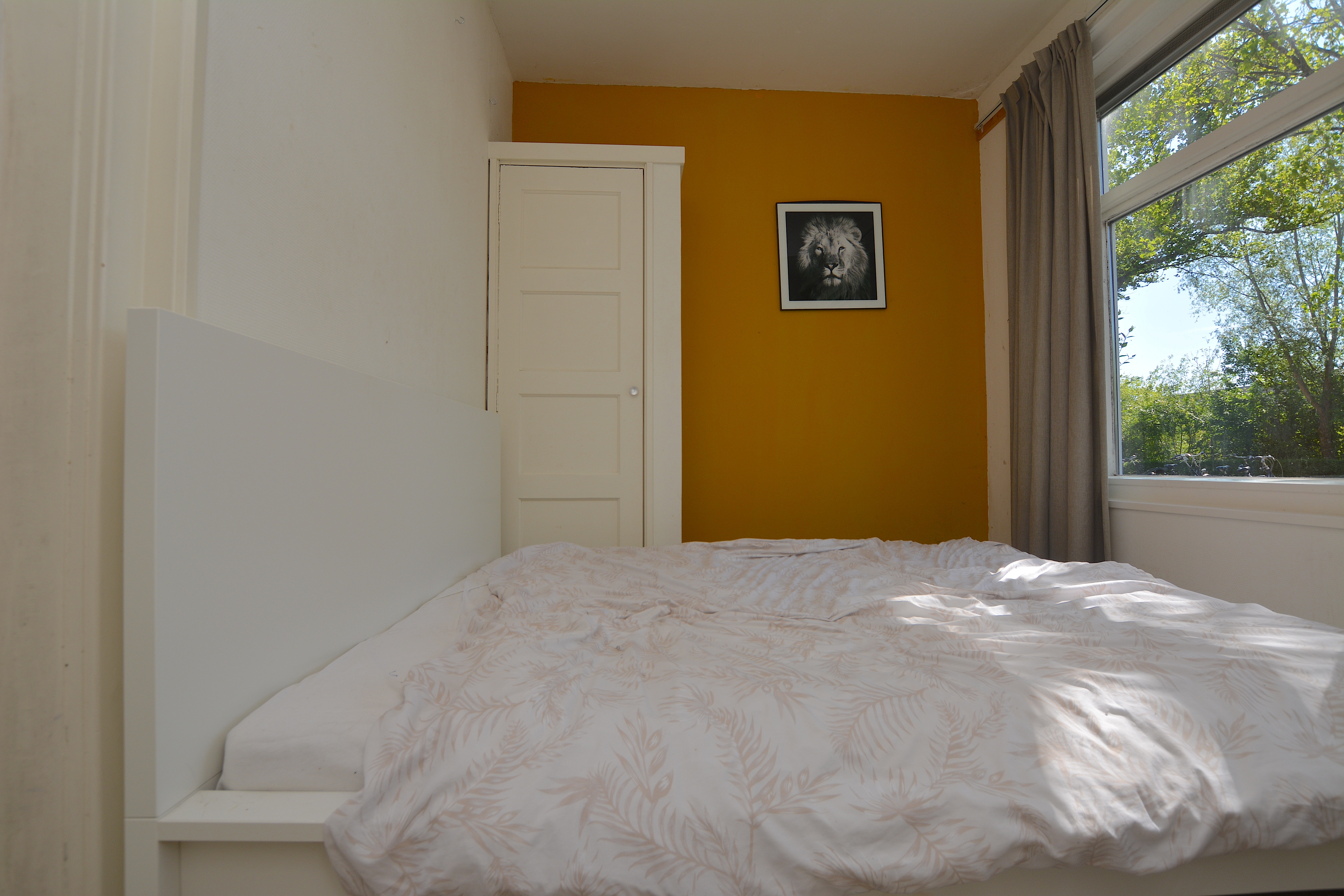 Daarnaast zijn er twee inbouwkasten en een eigen wastafel. De keuken, badkamer, tuin en het toilet deel je met één huisgenoot. De keuken is voorzien van een gasfornuis, spoelbak met kraan en een inbouwkoelkast met vriezer. In de tuin staat een klein schuurtje met extra opslagruimte.