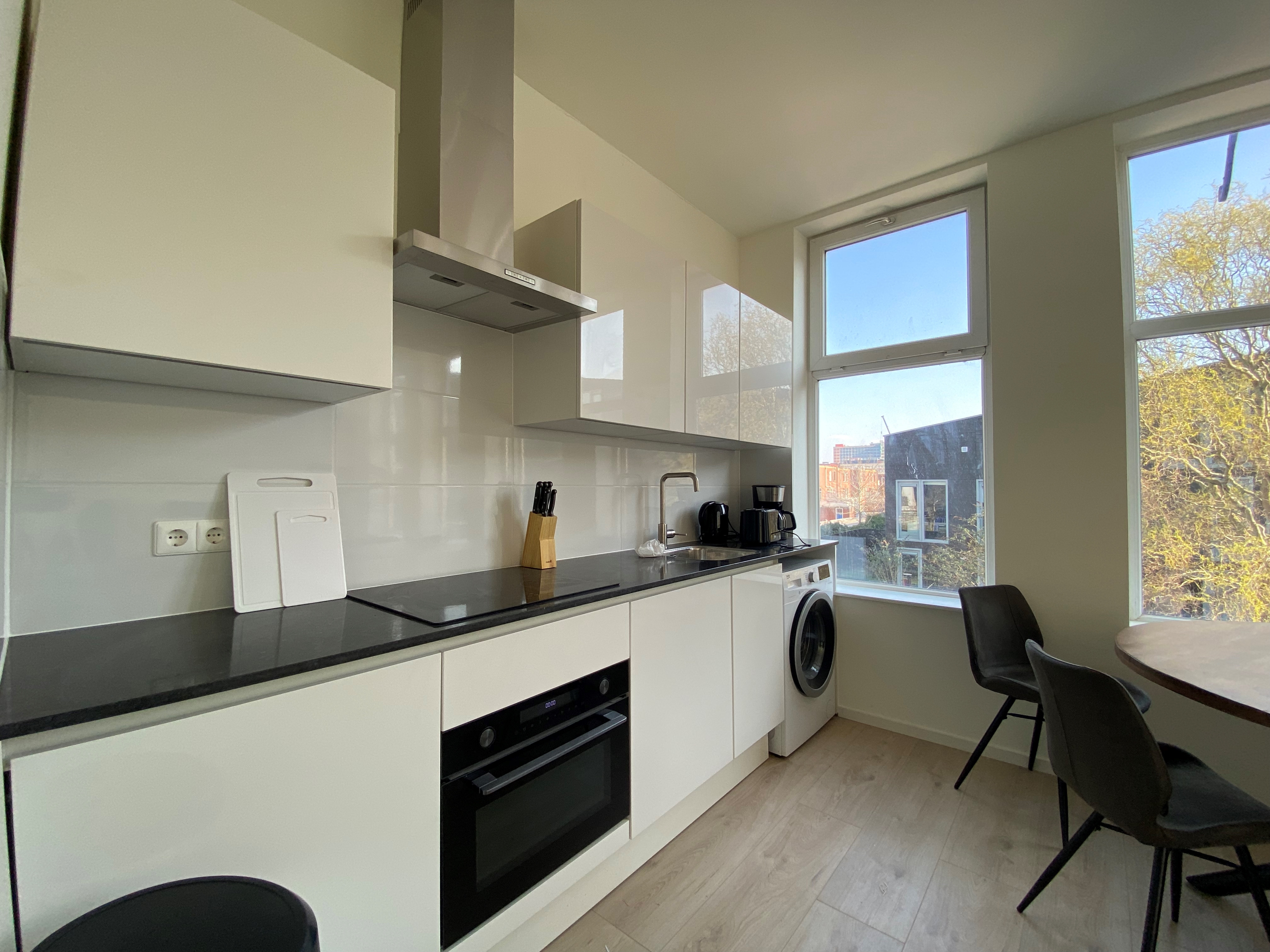 De woon-/slaapkamer beschikt over een open keuken, die voorzien is van een vaatwasser, combi oven/magnetron, inductiekookplaat, afzuigkap en koelkast. In de badkamer is een douche, toilet en wastafel aanwezig. Huurprijs en borg: De kale huur van de kamer bedraagt €896,91,- per maand. Daar komen servicekosten van €100,- per maand bij, welke gas, water en elektriciteit dekken.