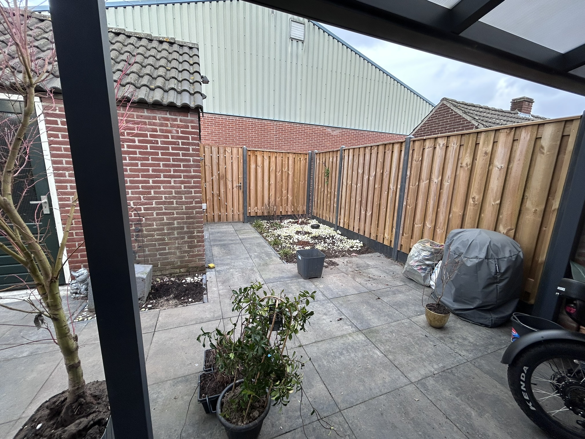 asbest dakbeschot zal de kabel via de gevel moeten worden geplaatst.De inkomenstoets is op basis van de huur-inkomenstabel van 2026.Zelf aangebrachte veranderingenIn de grote slaapkamer is een tussenwand geplaatst, op verzoek van de nieuwe huurder kunnen we deze verwijderen.Tegelvloeren in de hal, de keuken en de woonkamer. Standaard is er geen vloerafwerking aanwezig.Zaken ter overnameserresierbestrating tuinschuttingen vloerafwerkingraamafwerkinglaadpaal.