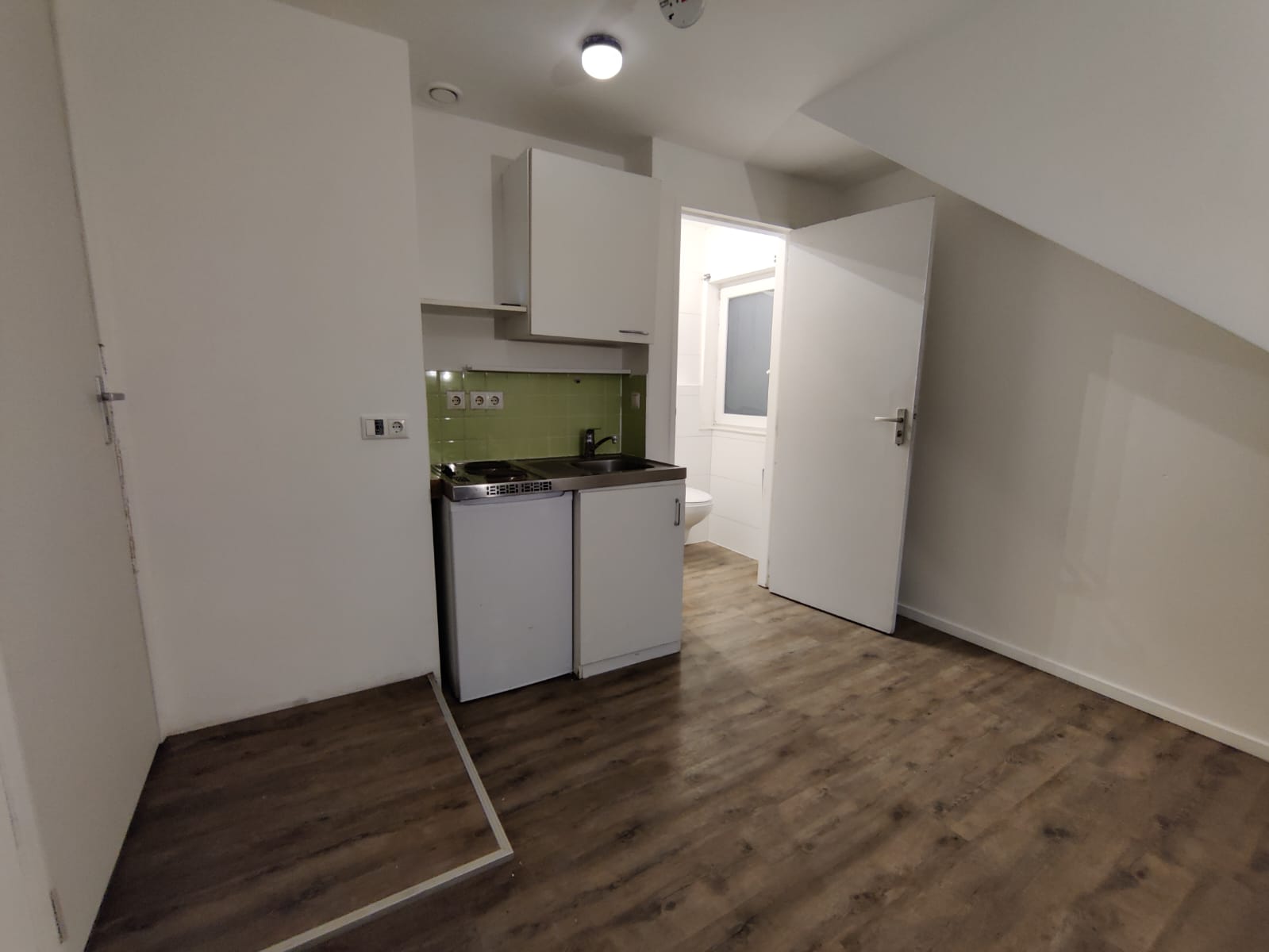 - Kitchenette met kleine koelkast, kookplaat en basisinventaris