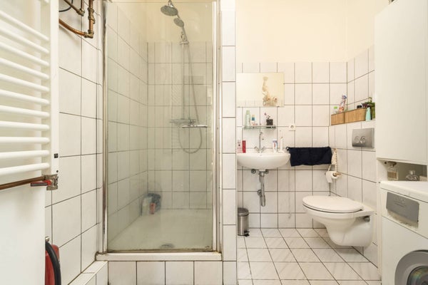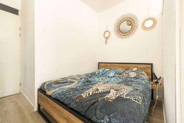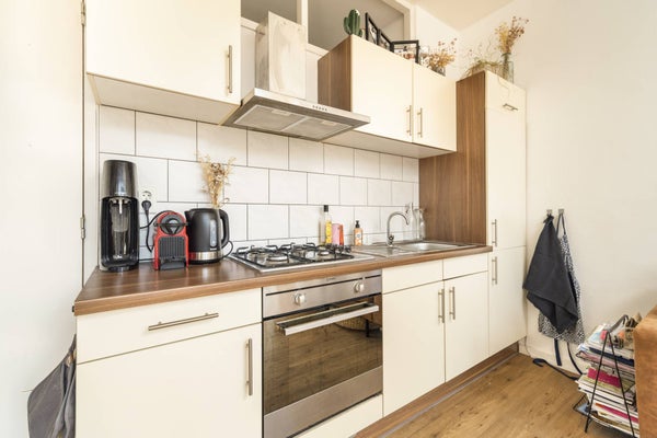 The kitchen is located at the rear of the living area and is generously sized. It is equipped with an oven, refrigerator, freezer, and ample cupboard space. Adjacent to the bedroom, at the back of the apartment, you will find the bathroom, which includes a toilet, shower, washbasin, and a washing machine connection. A supermarket is just a 3-minute walk away, and the main shopping street of Leiden can be reached within a similar walking distance.